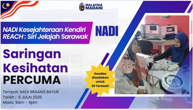 7 Julai 2025 | Aktiviti TerkiniSyukur, program Saringan Kesihatan Percuma sempena REACH: Siri Jelajah Sarawak telah berjaya dilaksanakan seperti yang dirancang!